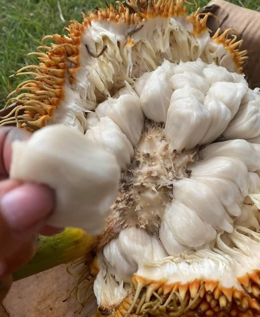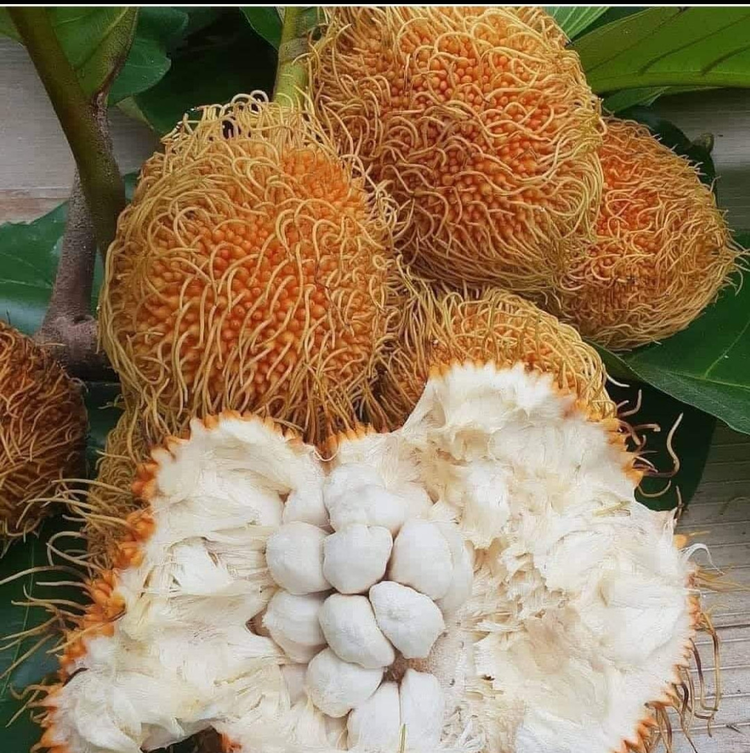 Pedalai belongs to the family of Jack and anjili fruit of Kerala. Scientifically called as ' Artocarpus sericarpus'. Pedalai resembles a big rambutan in appearance.Its outer skin is hairy and soft. Pedalai fruit marks it's origin from Borneo and Philippines. Pedalai can be grown in tropical climate areas with monsoon rainfall.Fully ripened pedalai fruit has an orange coloured outer skin which can be easily removed with hands. The inside yummy flesh appears in white colour.Taste resembles that of ordinary anjili fruit of Kerala, but more yummy than any other artocarpus.
