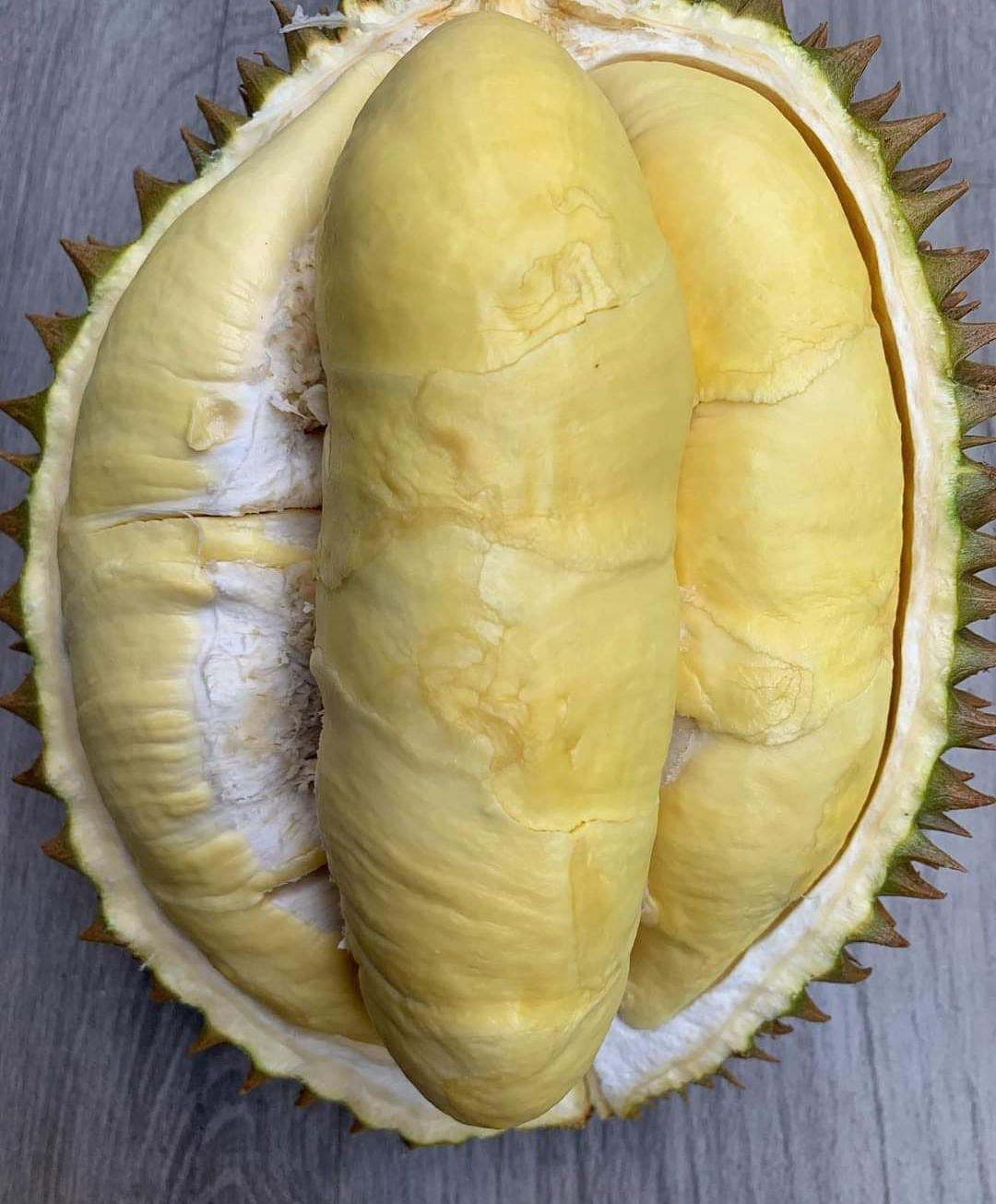 "Monthong durians" are a large fruit, typically weighing 3 to 5 kilograms, with an oval to cylindrical shape. They have a milder aroma compared to other durian varieties and a rich, sweet, and complex flavor with notes of vanilla, caramel, pepper, and sulfur. "Monthong 2" is a hybrid variety of this durian.