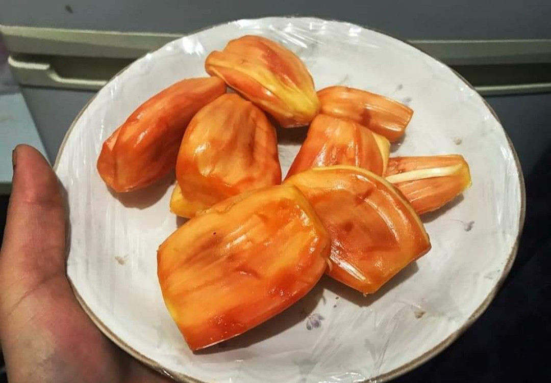 Siddu Red Jack fruit plants marked it's origin from Tumkur, a village in karnataka state.The jack tree was grown by an ordinary farmer of that village and later it was discovered by central horticulture research institute.This jack fruits are small in size about 2.5 kg size. An average of 30 nos bulbs will be obtained from one jack fruit. An average of 450 nos jack fruits will be yielded from one jack tree per year. The pleasant aroma jack fruit is red in colour, crispy and rich in its nutritious content.Taste is very yummy and sweet.Siddu red jacks are suitable for commercial cultivation also.Budded siddu red jack plants will start to yield with in 3 to 4 years.