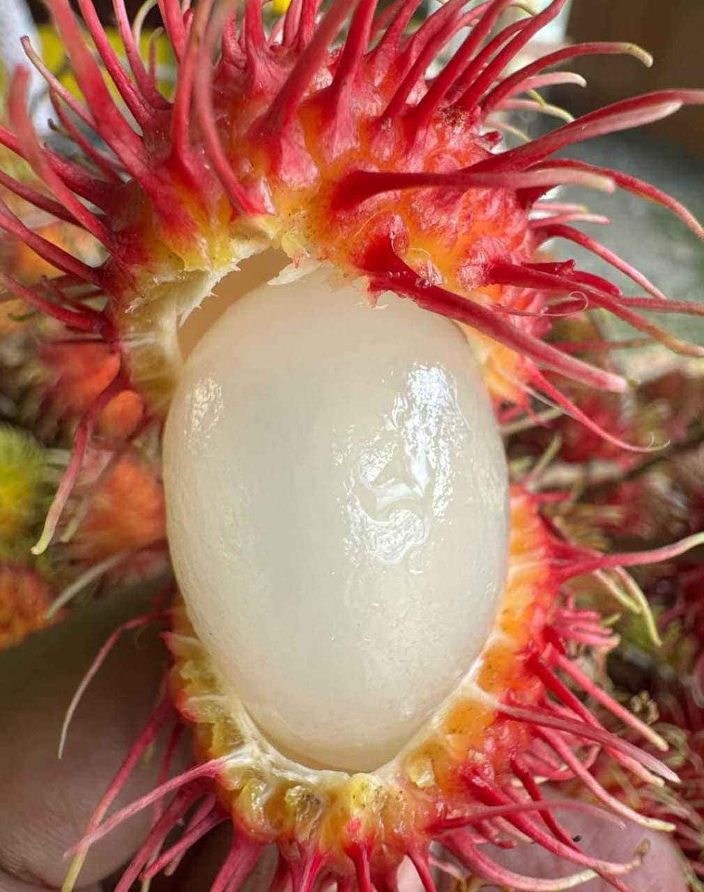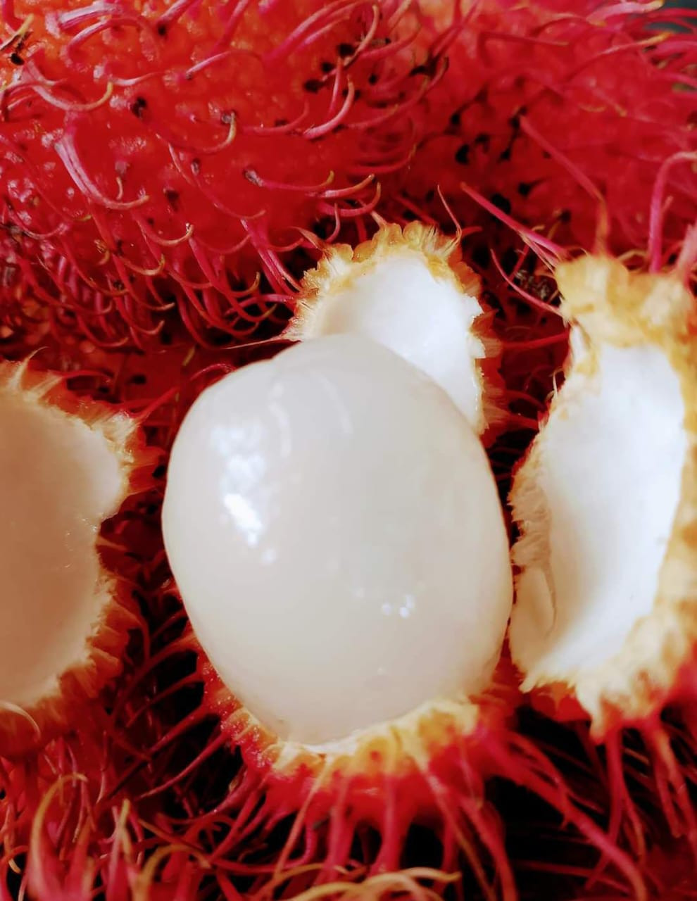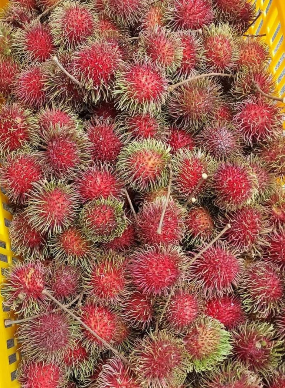 "Rambutan Maharlika" is a rambutan variety native to the Philippines, named "maharlika" (nobility) for its large size and rich flavor. The fruit is small, round or oval, with a reddish-brown, hairy skin. It is juicy and sweet with a slightly acidic taste, and its translucent white flesh surrounds a single large seed. The plant is a medium-sized tree that can grow up to 20 meters tall and produces large fruit clusters weighing up to 5 kilograms.