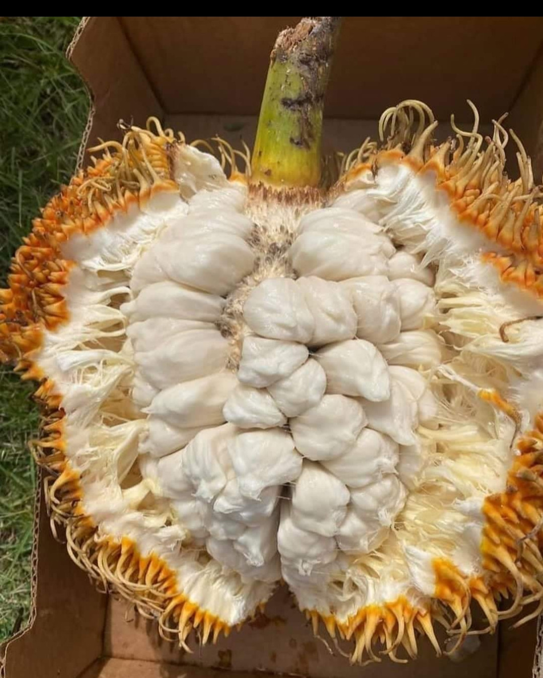Pedalai belongs to the family of Jack and anjili fruit of Kerala. Scientifically called as ' Artocarpus sericarpus'. Pedalai resembles a big rambutan in appearance.Its outer skin is hairy and soft. Pedalai fruit marks it's origin from Borneo and Philippines. Pedalai can be grown in tropical climate areas with monsoon rainfall.Fully ripened pedalai fruit has an orange coloured outer skin which can be easily removed with hands. The inside yummy flesh appears in white colour.Taste resembles that of ordinary anjili fruit of Kerala, but more yummy than any other artocarpus.