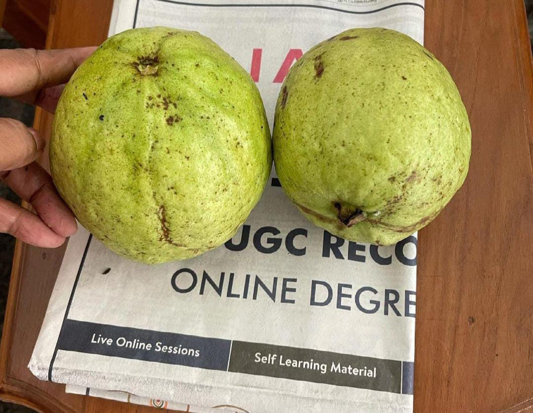 Kilo Guava" (Psidium guajava) is a high-yielding, white-fleshed variety named for its large fruit size. The fruit is firm, mild in flavor, and keeps well. For the best quality, it should be allowed to ripen on the tree. This variety grows quickly, making it suitable for cultivation in pots. Kilo Guava plants are evergreen and self-fertile.