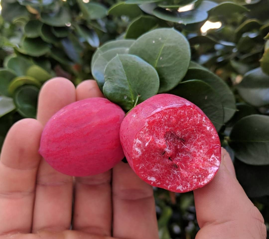 Sweet karonda cherry is the sweeter variety of Normal Bakery cherry. While the bakery cherry is tart and sour, Sweet Karonda Cherry is sweet and ready to eat from the plant itself without processing. It can be grown as an ornamental plant too.